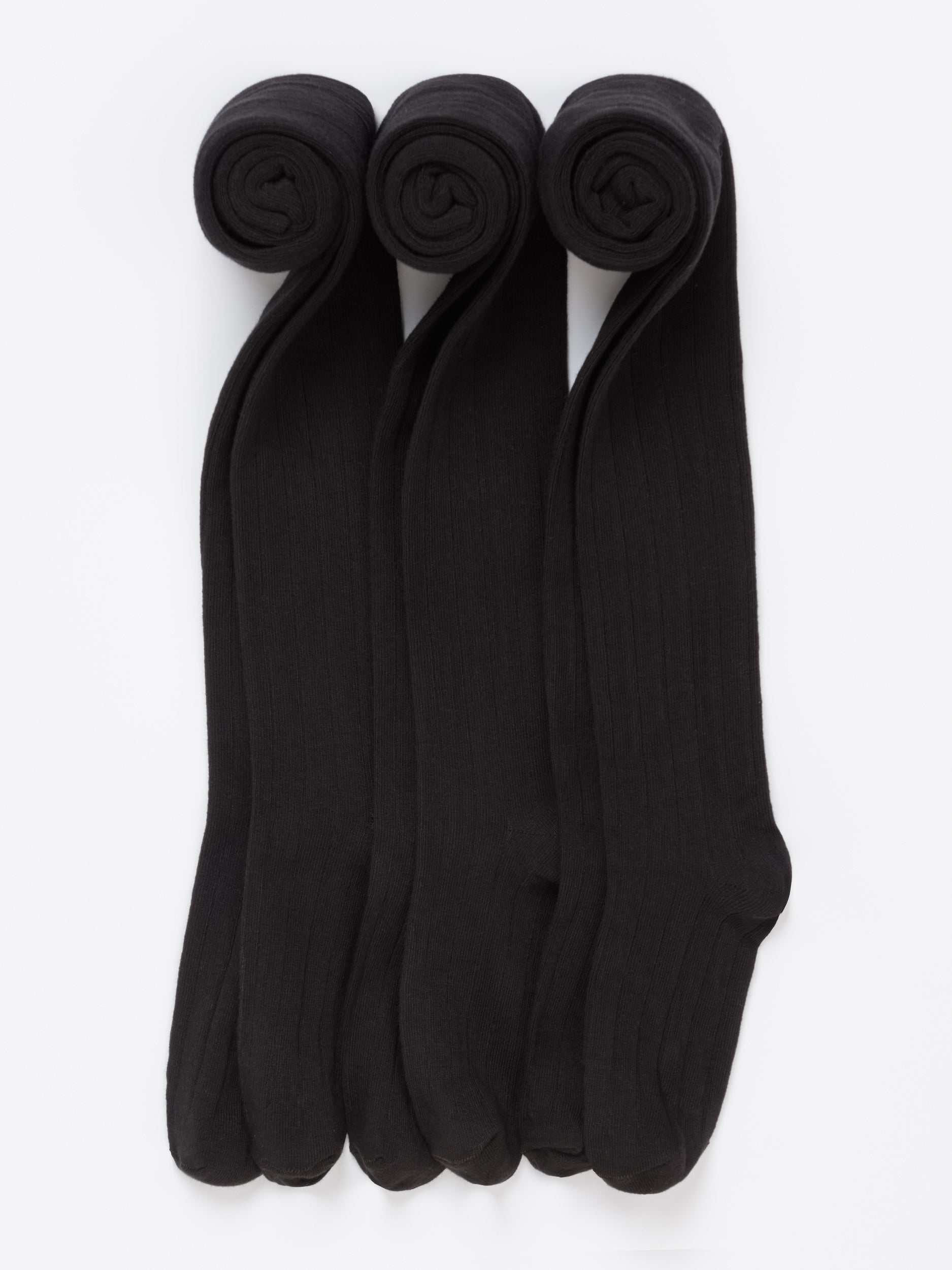 3 Pack Black Kids School Tights - Ribbed